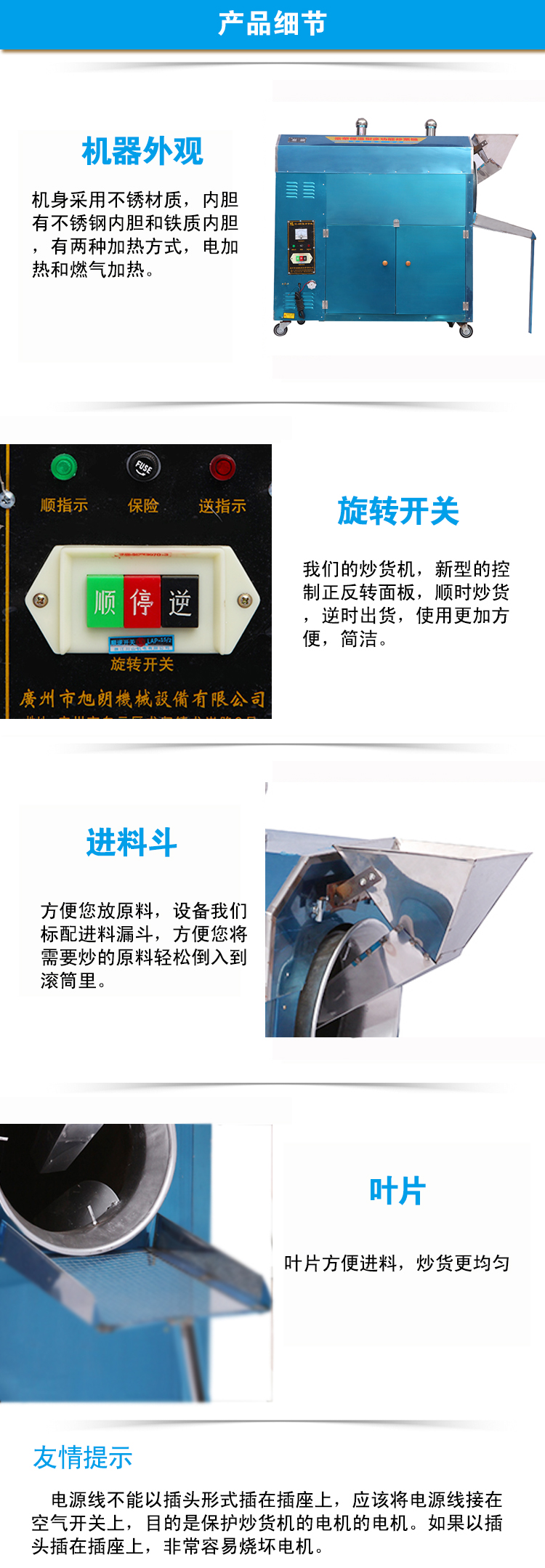 5.在炒的过程中,所炒物料在滚筒内立体翻炒不粘锅。