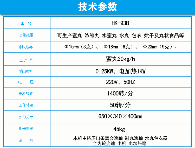 状产品。机器采用高精度的机械传动方式。可连续自动(也可手动)加工成型。中药、保健、食品行业生产所需成型