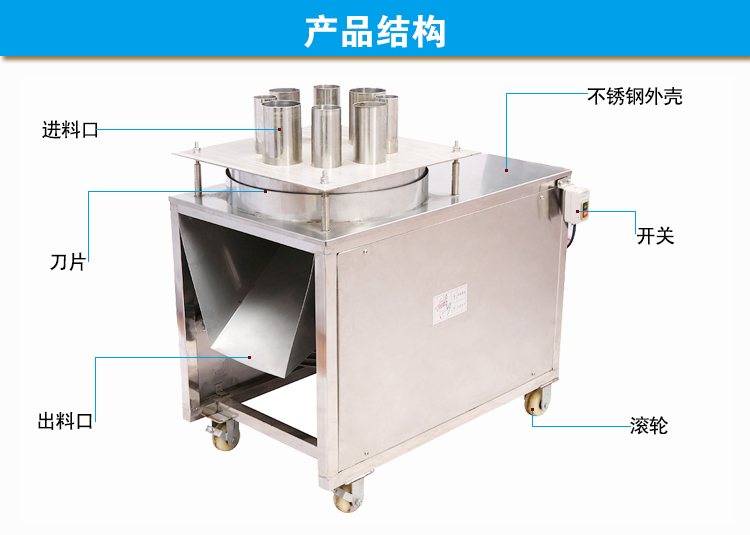的理想设备。主要有机架、旋转刀盘、传动部分、电机、出料口等组成,适于体积中等、呈长条圆柱状的物