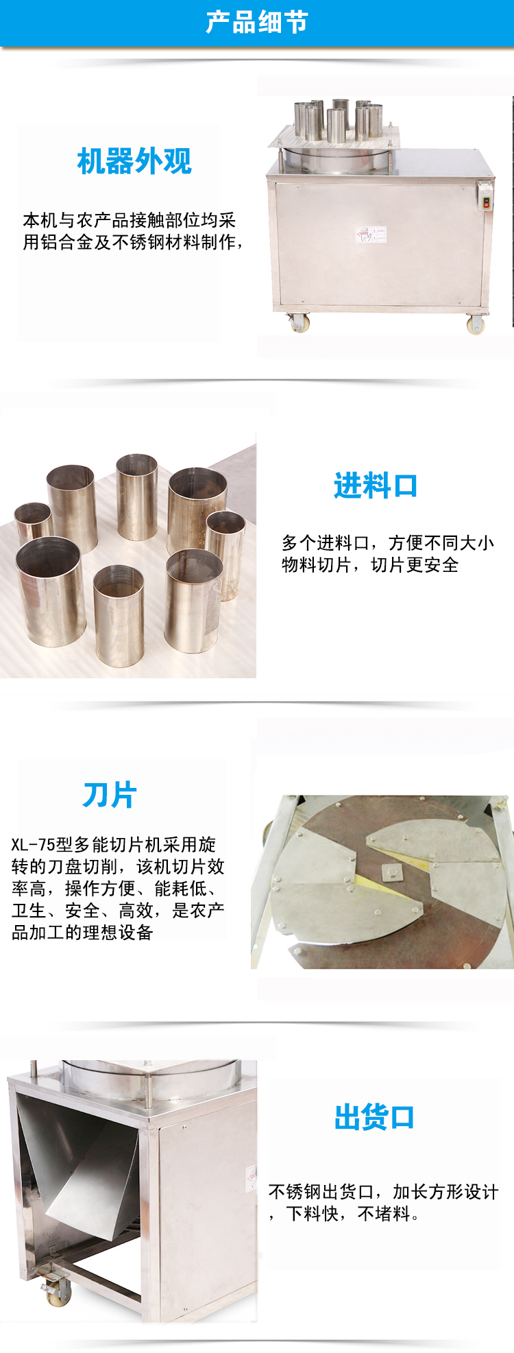 组织新鲜、不破坏纤维组织。同时该机切片效率高、操作方便、能耗低、卫生、安全、高效,是农产品加工
