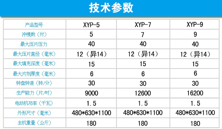 半岛集团公司生产的小型旋转式压片机有XYP-5、XYP-7、XYP-9三种规格,分别有5、7、9副冲模, |